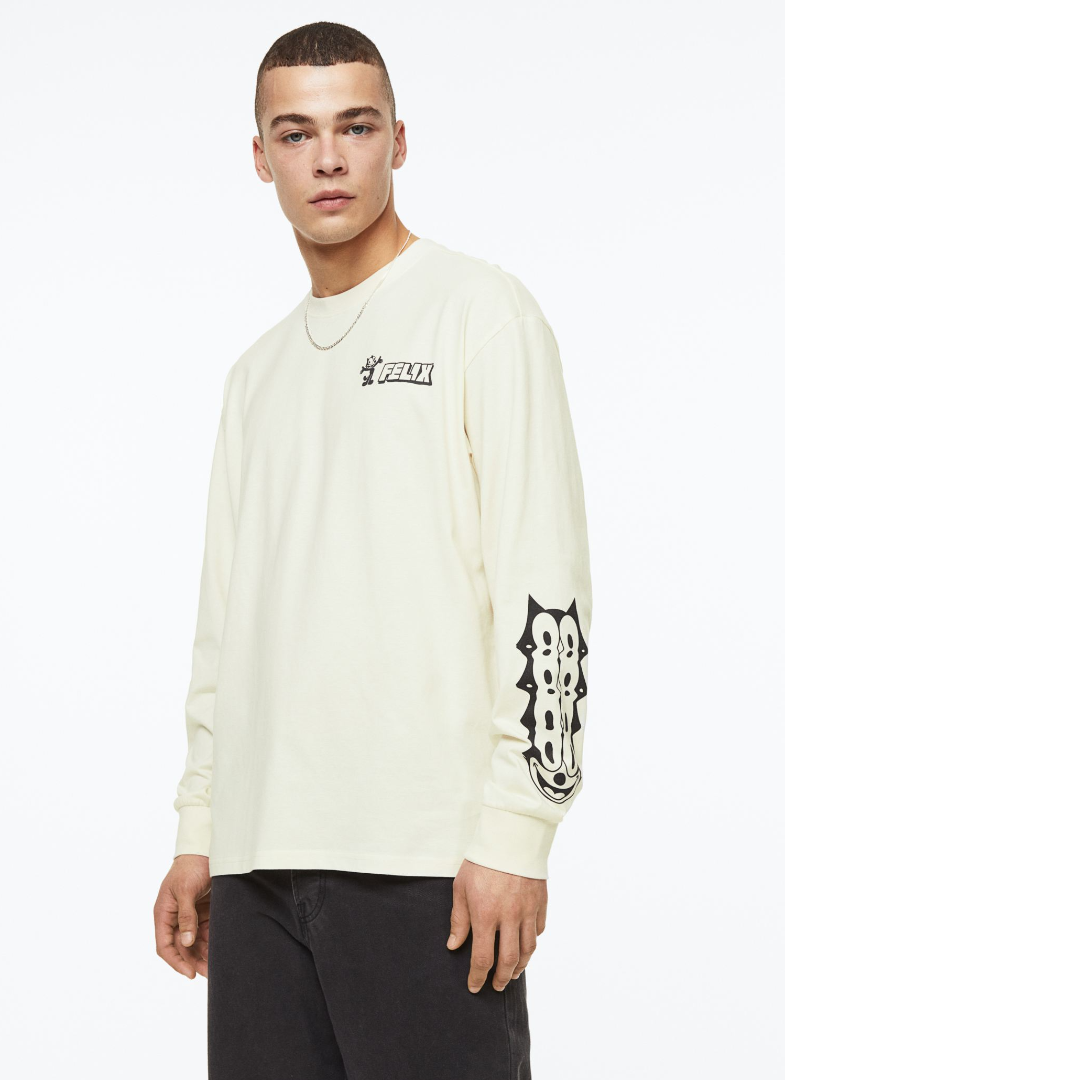 Relaxed-fit shirt in soft cotton jersey with a printed design. Dropped shoulders, long sleeves, and ribbing at neck and cuffs.