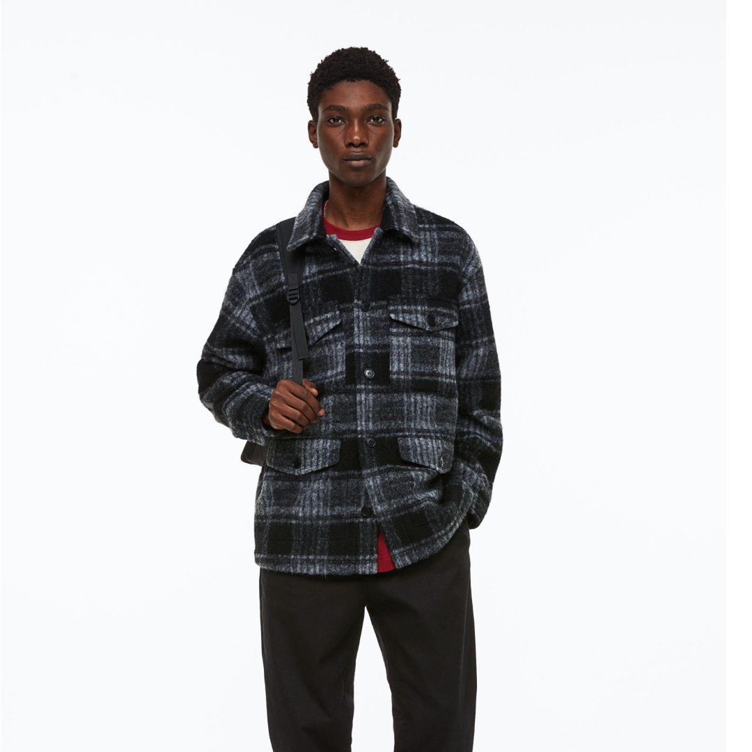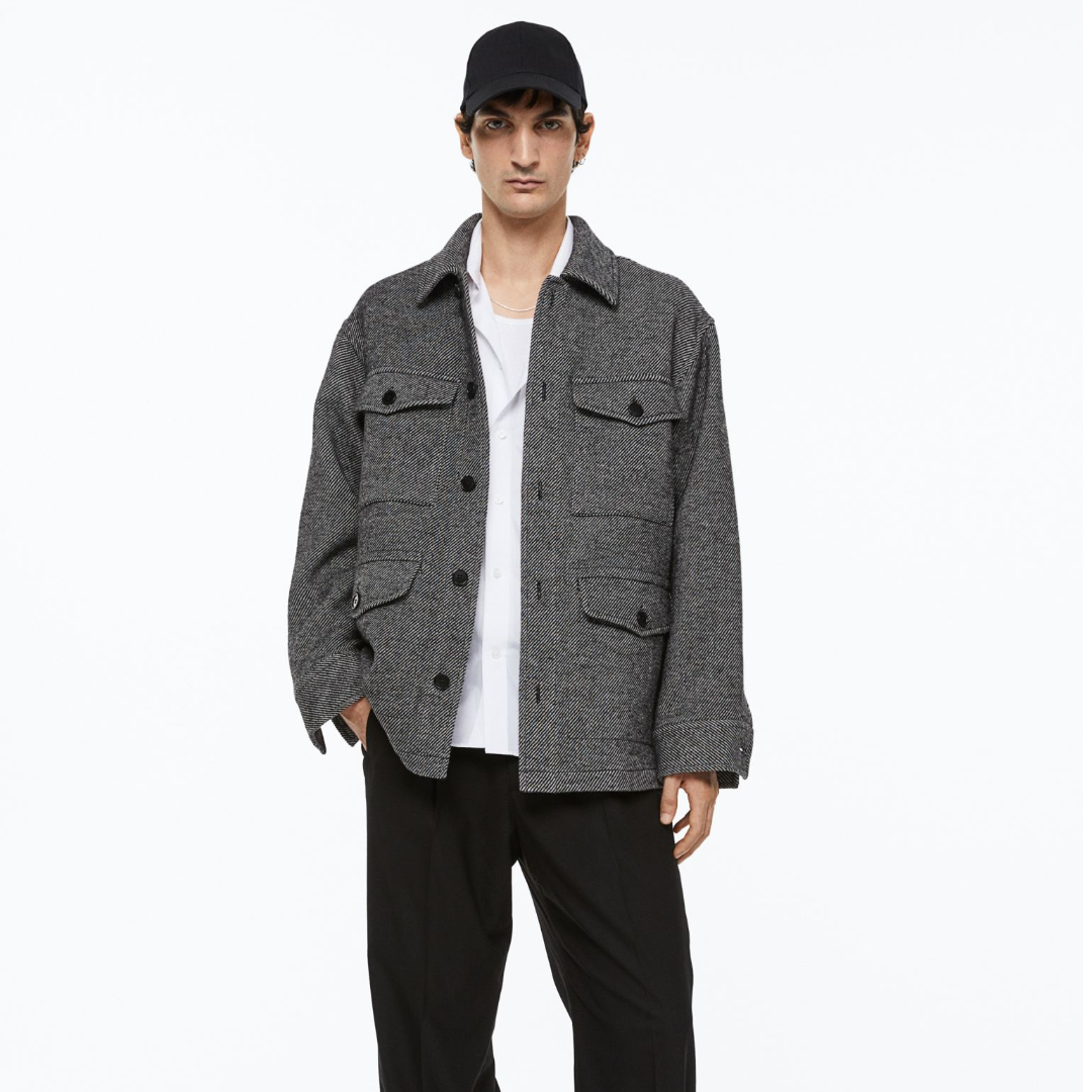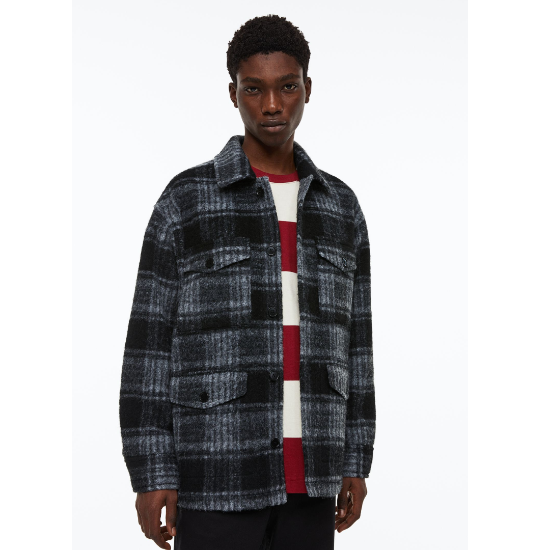 Shacket in twill made from a soft wool blend. Collar, buttons at front, and long sleeves with button at cuffs. Chest pockets and front pockets, all with flap and button. Partly lined.